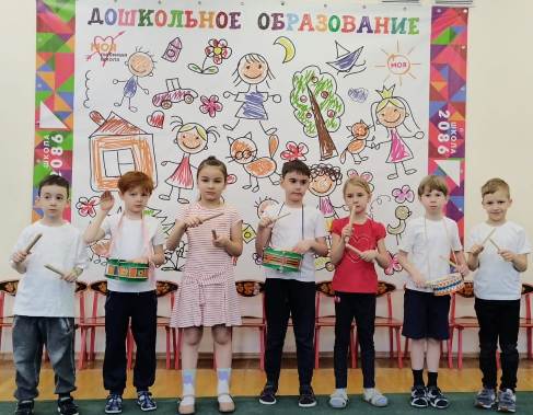 В преддверии празднования 80-летия Победы в Великой Отечественной войне в дошкольном отделении прошли музыкальные тематические мероприятия, объединившие в себе знакомство с родной историей, танцы, песни и игру на музыкальных инструментах.