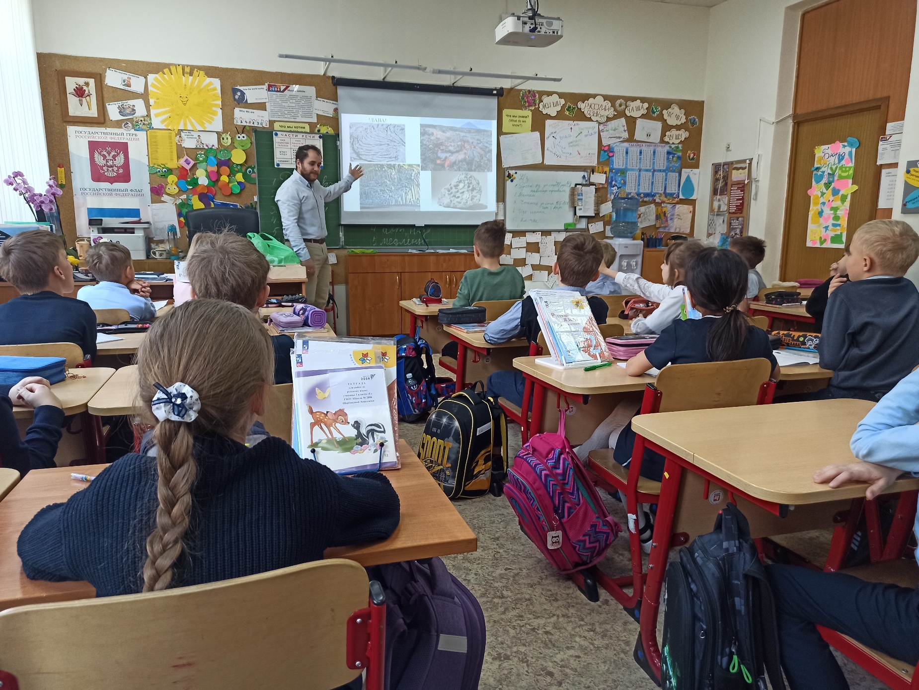 К ученикам 2 класса «Е» в гости пришёл вулканолог. Ребята узнали о строении Земли, о ядре, мантии и коре, о том, как образуются вулканы, где они находятся. Даже о теории тектоники литосферных плит! Второклассники с удовольствием подержали в руках горные породы и лаву.