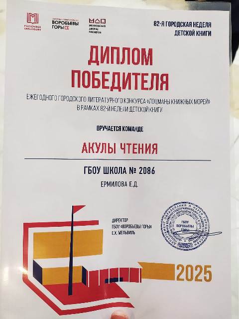 Поздравляем сборную команду 2 «Ю» и 2 «Е» классов «Акулы чтения» с победой в городском литературном конкурсе «Лоцманы книжных морей»!