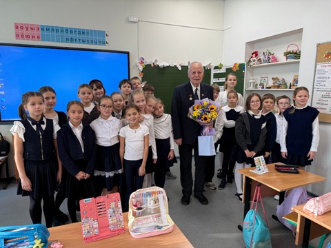 Сегодня в 4 «И» классе состоялся урок мужества. Его провел Владимир Антонович Муравский - член Совета Ветеранов, почетный хранитель школьного музея Боевого пути 13-й Гвардейской дивизии под командованием А.И. Родимцева, наставник юнармейского отряда нашей школы.